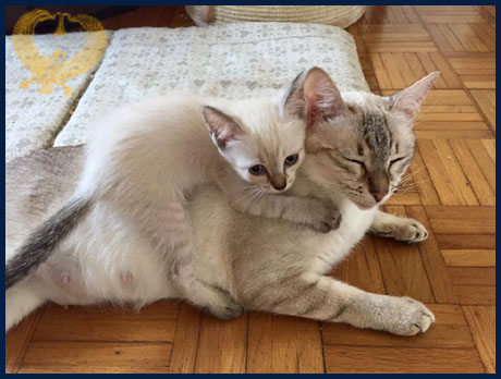 Accompagnerò personalmente i micini nella nuova famiglia, per aiutarli ad integrarsi prima e nel migliore dei modi. I Thai sono mici abituati ed amano la vita in casa, non sono adatti per essere lasciati in giardino, dove possono perdersi o contrarre malattie da gatti randagi. Particolare attenzione va posta anche alle finestre ed ai terrazzi, dai quali possono cadere e che nel caso di utilizzo dovranno essere delimitati con protezioni che ne impediscano la fuga o la caduta. |