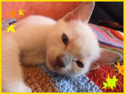 I micini si trovano a Carassai, vicino ad Ascoli Piceno. Per informazioni rivolgersi a Manuela : 328.1371110 I Thai sono mici abituati ed amano la vita in casa, non sono adatti per essere lasciati in giardino, dove possono perdersi o contrarre malattie da gatti randagi. |